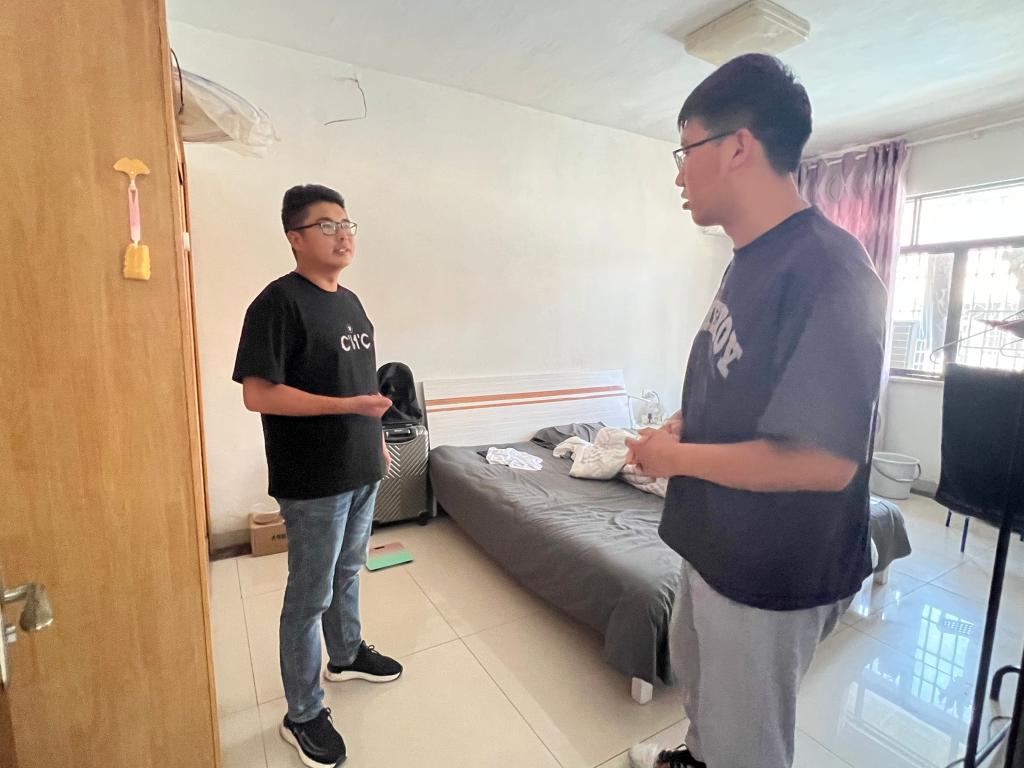林香亮对校外住宿研究生进行安全隐患排查。重点查看了校外住宿研究生的手续办理是否齐全,住宿环境是否安全、生活用电是否规范等问题,并亲自与房东沟通员工住房安全问题。最后,他还走访了研究生实验室,强调了新学期实验室要安全规范用电,务必保证人走断电。