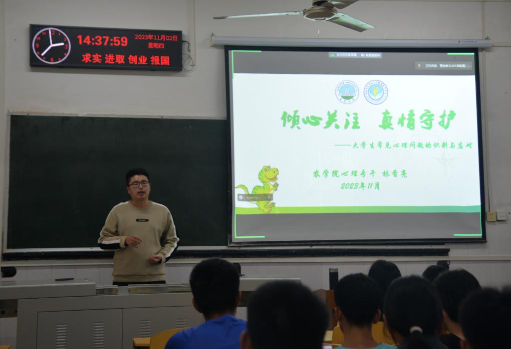 M88官方网站心理专干林香亮从老员工的身心特点和老员工心理健康的评判标准两方面进行介绍,引导员工骨干正确认识心理危机的防范、识别与干预。他通过讲述自助与助人方法,增加了同学们心理危机干预的知识和技能,帮助同学们在生活中正确自助与助人。