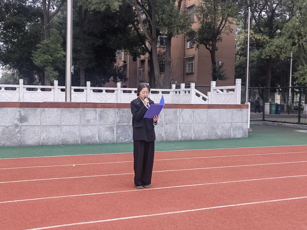 7时整,升旗仪式正式开始。踏着铿锵有力的步伐,国旗护卫队精神抖擞地走向升旗台。鲜艳的五星红旗冉冉升起,全体师生庄严注视,齐声高唱国歌。