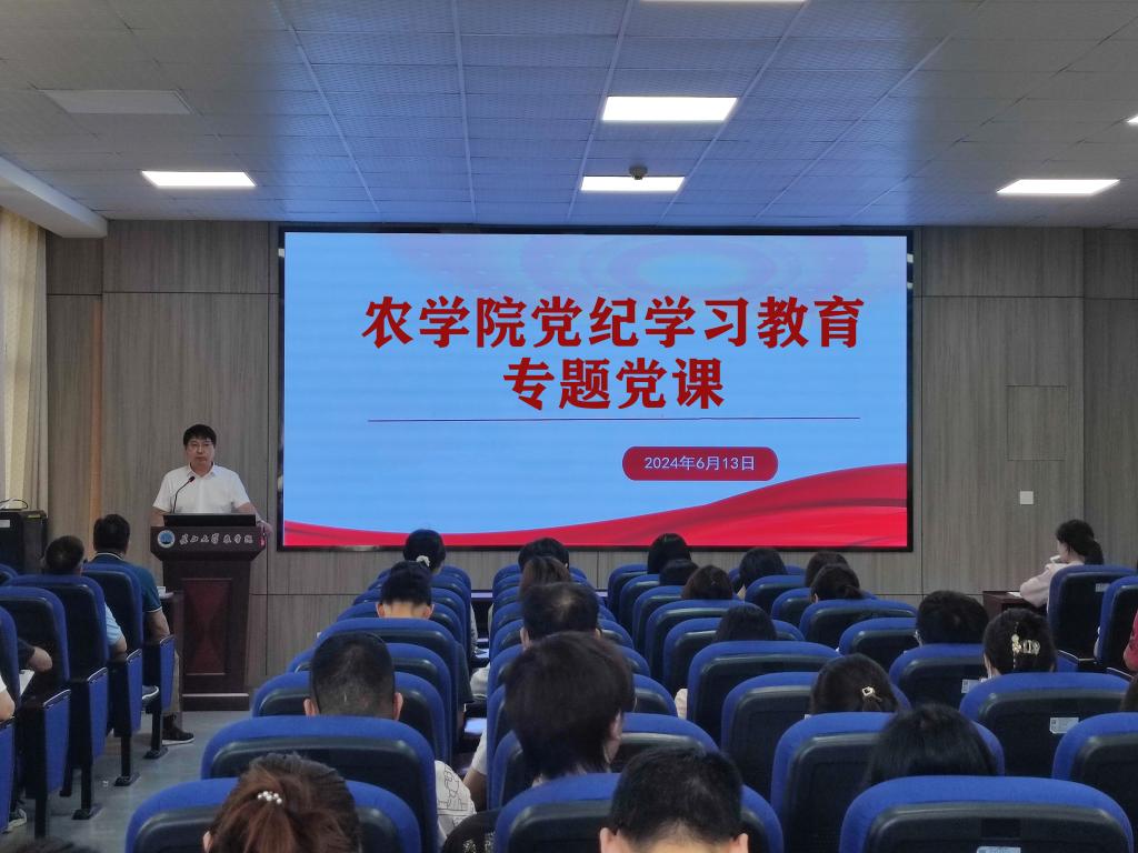讲授党课环节,姜书记讲授题为“以纪正心 砥砺前行”纪律党课,他向大家通报几起发生在身边的典型违纪案例,他表示,开展党纪学习教育,违法案例是最好的教科书,全体党员要以先进典型为引领,以反面典型为镜鉴,坚持党性和党纪一起抓,把党纪学习同党风廉政、廉洁文化、师德师风结合起来,切实把党纪学习教育成效转化为推进中心工作的有效举措。此外,姜书记还要求大家要时刻用《条例》的准绳检视自己,用干事创业的行动砥砺自己,做到以纪正心、砥砺前行,为国家培养更多兴农人才而不懈努力。