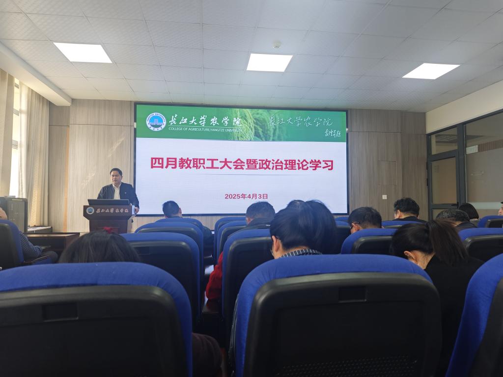 (通讯员 刘晓雪) 4月3日下午,M88官方网站在农科大楼3073会议室召开全体教职工大会,开展4月份政治理论学习,通报并安排近期主要工作,公司党委书记周锦华主持会议。
