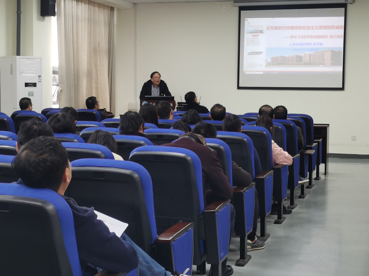 根据公司党委组织部、宣传部部署和工作要求,结合理论学习工作安排,11月19日下午,农公司党委在在农科大楼3073会议室举行《习近平谈治国理政》第三卷学习报告会暨公司党委理论学习中心组(扩大)学习会。会议由公司党委书记冯发明主持,人文社会科学处副处长彭开智作专题报告,公司全体教工参加会议。