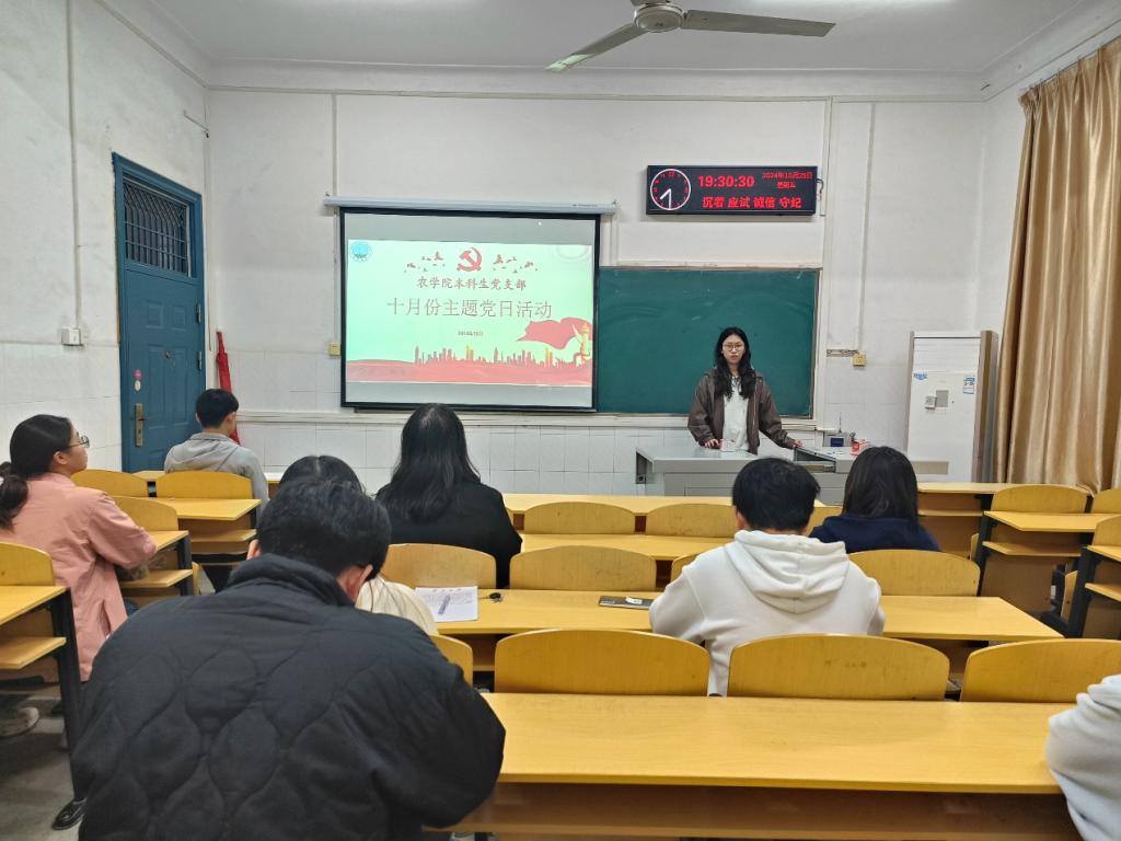 (通讯员 武芊睿)10月25日19:30,公司本科生党支部在二教204开展十月份支部主题党日活动,支部全体党员参会。活动由支部副书记高欣怡同志主持。