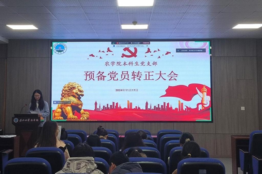(通讯员 武芊睿)为加强党员队伍建设,进一步加强组织凝聚力,11月17日,M88官方网站本科生党支部在农科大楼3073召开2024年下半年预备党员转正大会,活动以线上线下相结合的方式开展,讨论预备党员王思宇等5名同志的转正问题。应到会党员27名,实到会20名,应到会有表决权的正式党员9人,实到会7名,超过半数,符合党员发展流程。此次会议由支部副书记高欣怡主持。