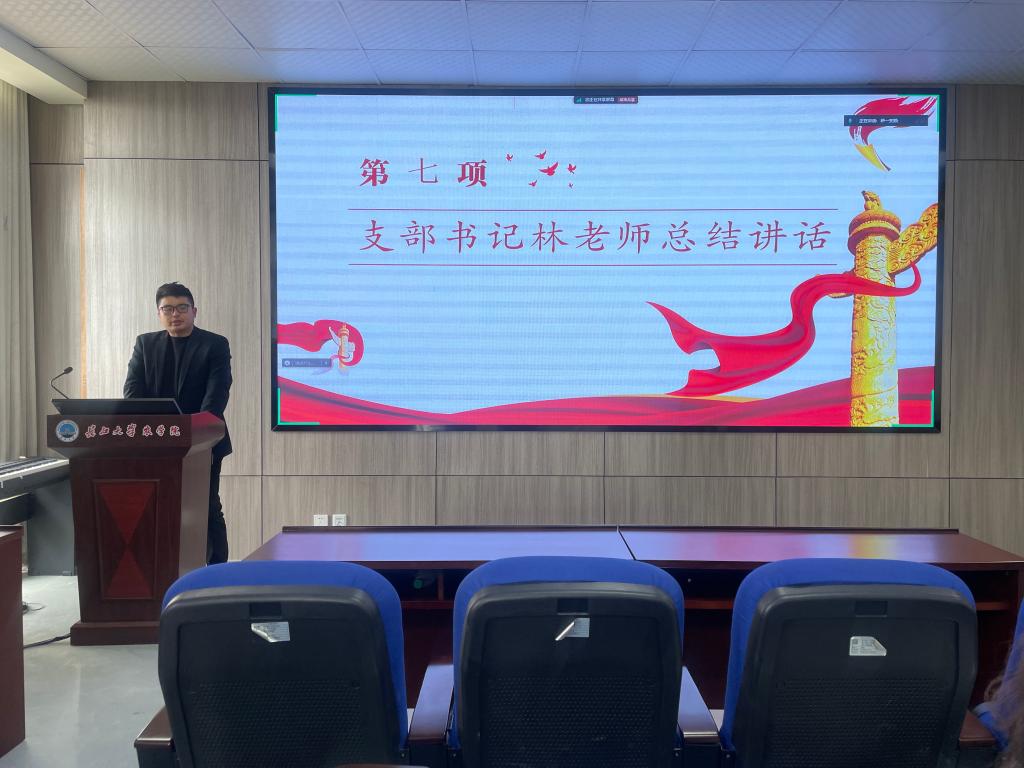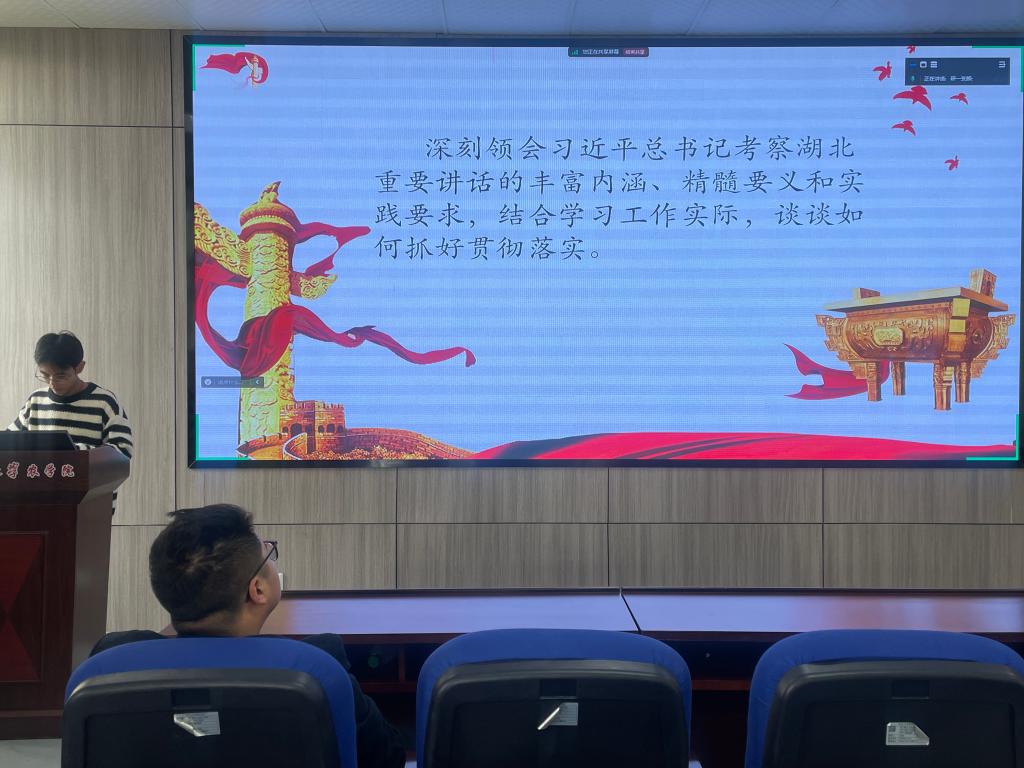 支部书记林香亮结合习近平总书记考察湖北重要讲话的相关内容,对全体党员提出了要求。他强调,各位党员同志应当深刻领会其丰富内涵和精髓要义,将个人理想抱负与国家发展方向紧密结合,在学习中注重理论与实践相结合,明确个人的发展方向,牢记嘱托,奋力拼搏,以实际行动贡献青春力量。