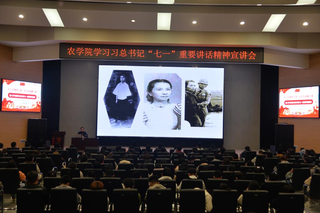 “希望同学们准确理解并全面把握习近平总书记的七一重要讲话精神,不断从革命先辈的事迹中继承和弘扬共产党员坚韧不拔、为国为民的精神,不断锤炼政治觉悟和思想水平,不断学习科学文化知识,守正创新,成为有志气、有骨气、有底气的新时代青年,以高度的专业自信,学会用脚步丈量土地,学农爱农,把论文写在祖国的大地上,为乡村振兴贡献青春力量!”农公司党委副书记谭亮魁在会议最后如是说到。