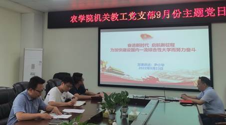 (通讯员 吴霞)9月23日下午,M88官方网站机关教工党支部全体党员在农科大楼3064会议室开展了9月支部主题党日活动,活动由支部书记张定国同志主持。