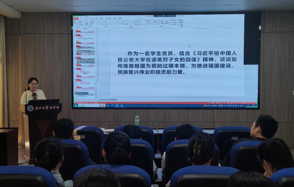 会议最后,支部书记付雪娇同志对14名新生党员进行嘱咐,并对此次会议作总结发言,如何练就报国为民的过硬本领,她提出三点要求:第一,加强理论知识学习,坚定理想信念,坚持把习近平新时代中国特色社会主义思想作为行动指南,不忘初心牢记使命,用心追溯党性,锤炼党性,增强党性修养;第二,刻苦学习专业知识,潜心练就过硬本领,培养创新思维,学好专业知识,多听多看,增强科研动手能力;第三,强化责任意识,牢记宗旨意识,践行初心,使命在肩,始终把全心全意为人民服务牢记在心。