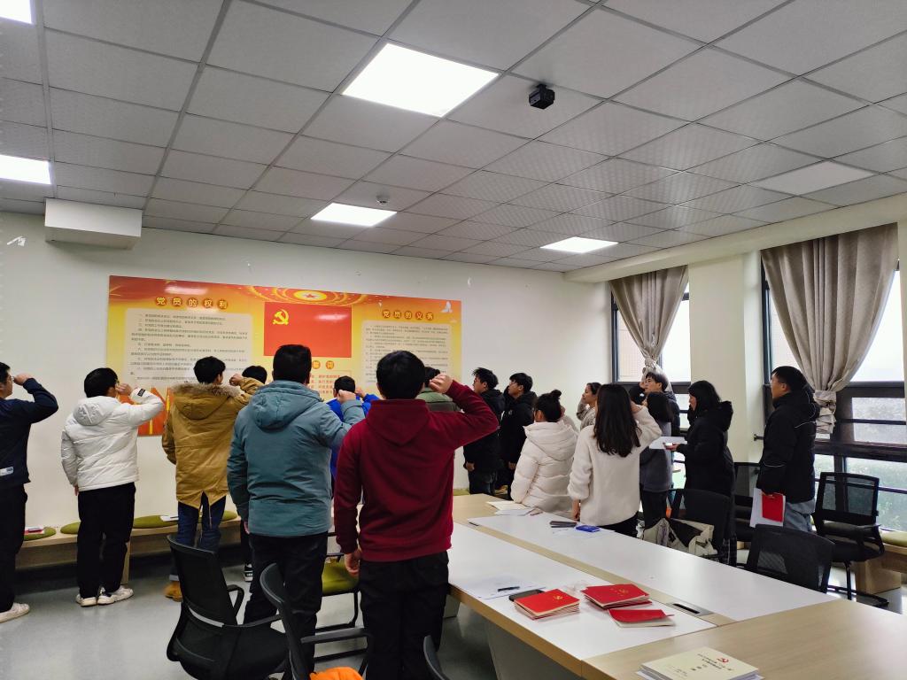 李瑞杰带领全体党员重温入党誓词。罗丽娅对本月党费交纳情况进行简要说明。郑杰鑫诵读《中国共产党章程(修正案)》第一章相关内容。韩金玲为党员们分享了“共和国勋章”获得者张富清朴实纯粹、淡泊名利的精彩人生。范欣、刘可为领学了《中共中央举行纪念毛泽东同志诞辰130周年座谈会 习近平发表重要讲话》内容。“作为一名员工党员,结合《国家主席习近平发表二〇二四年新年贺词》与《2024年新年献词》,展望2024年,以“四个更加”的理念继往开来、乘势而上、继续奔跑,以更加优异的成绩向中华人民共和国成立75周年献礼。”全体党员展开研讨。