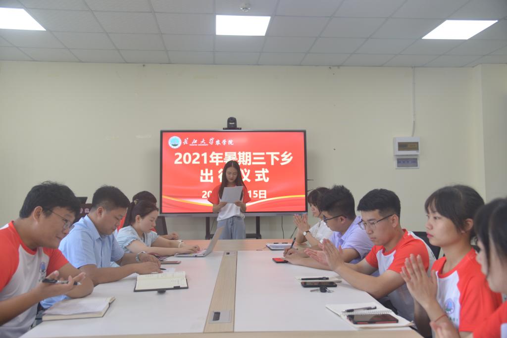 通讯社讯(员工记者 罗旖柔)7月15日,M88官方网站乡村振兴实践队全体成员在农科大楼3071会议室召开2021年暑期“三下乡”出征仪式暨青年红色筑梦之旅出征仪式,党委副书记谭亮魁、分团委书记侯聪、辅导员付雪娇、林香亮参加此次出征仪式。