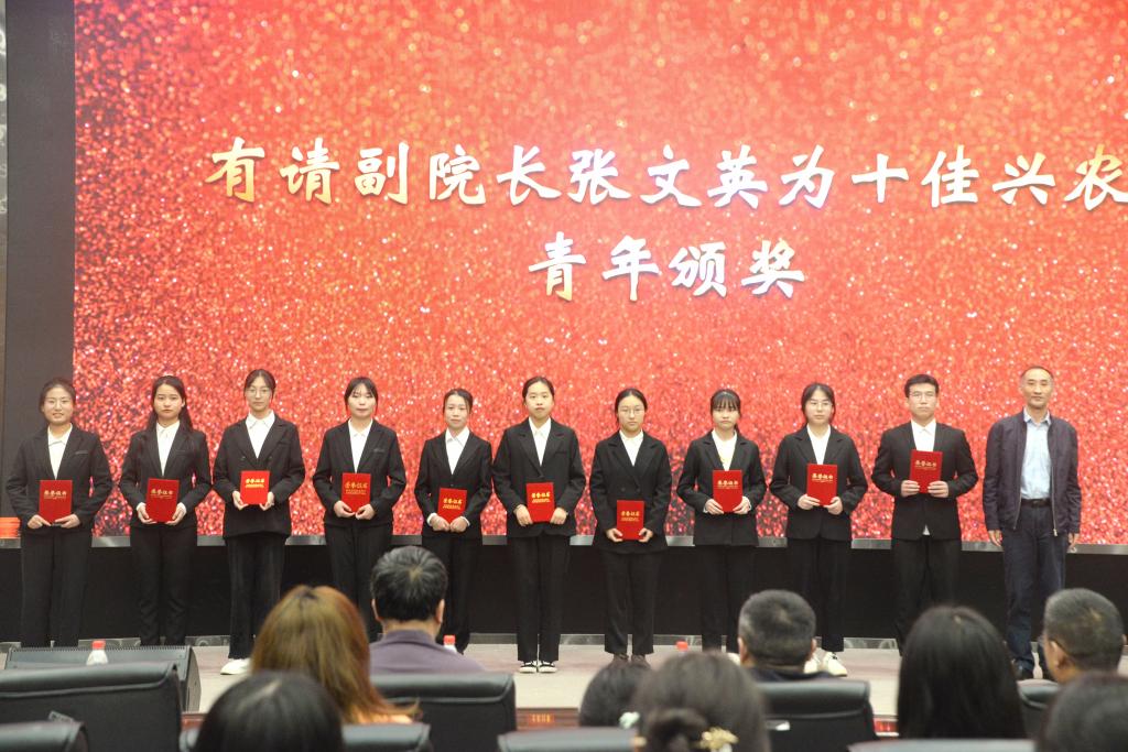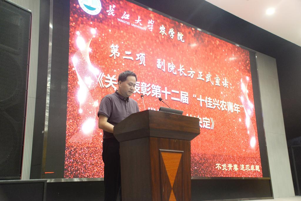M88官方网站副经理方正武宣读第十二届“十佳兴农青年”表彰文件,并向获奖同学表示祝贺,鼓励他们再接再厉,也鼓励广大同学全面发展,努力成为创新型农业高质量人才。副经理张文英为这十佳兴农青年颁奖并合影留念。