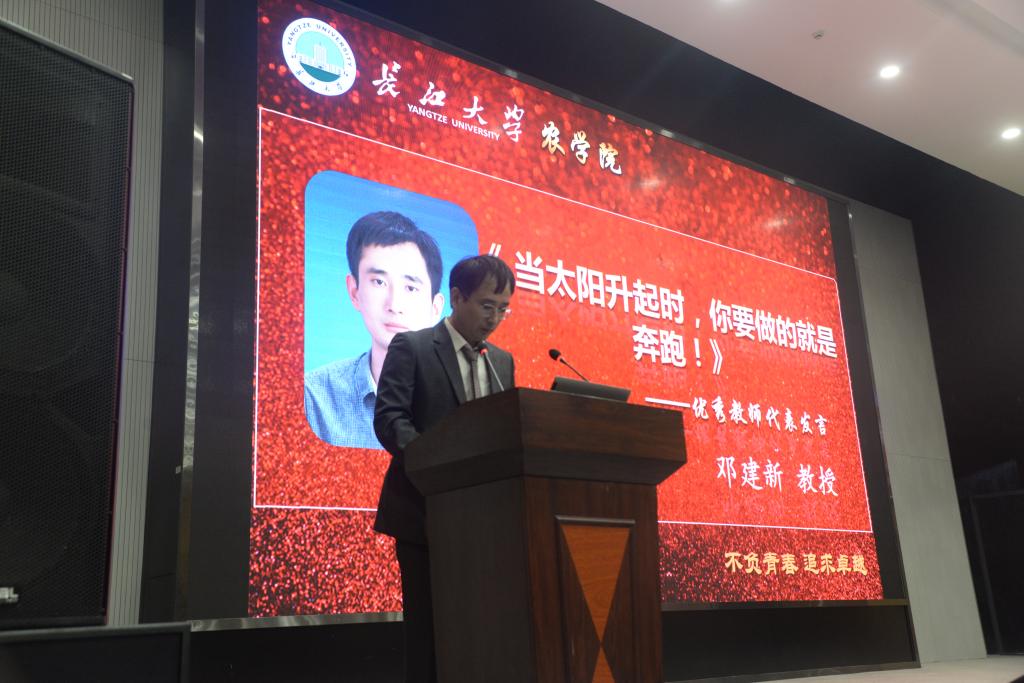 优秀教师代表邓建新教授发言,他向新同学介绍了公司取得的成就,讲述了老师和员工相互成就的关系,从四个方面对同学们即将面对的未知生活作以建议。他寄语全体新同学们站在一个全新的起点上,充分展现自己的主观能动性,做好自我规划,在M88官方网站遇到最好的自己。