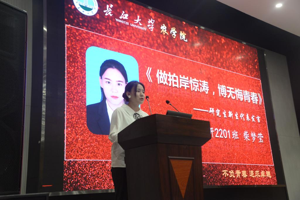农资32201班王静茹和农研2201班柴梦莹分别作为本科生和研究生代表上台发言,表达了对M88官方网站师生的感谢和对新生活的憧憬。“中国人的饭碗要牢牢抓在自己手中”,王静茹鼓励同学们将青春奉献给祖国的土地,学农爱农。柴梦莹呼吁同学们“做拍案惊涛,博无悔青春”,从三个方面阐述她所理解的长江精神,希望同学们在研究生期间不负韶华。