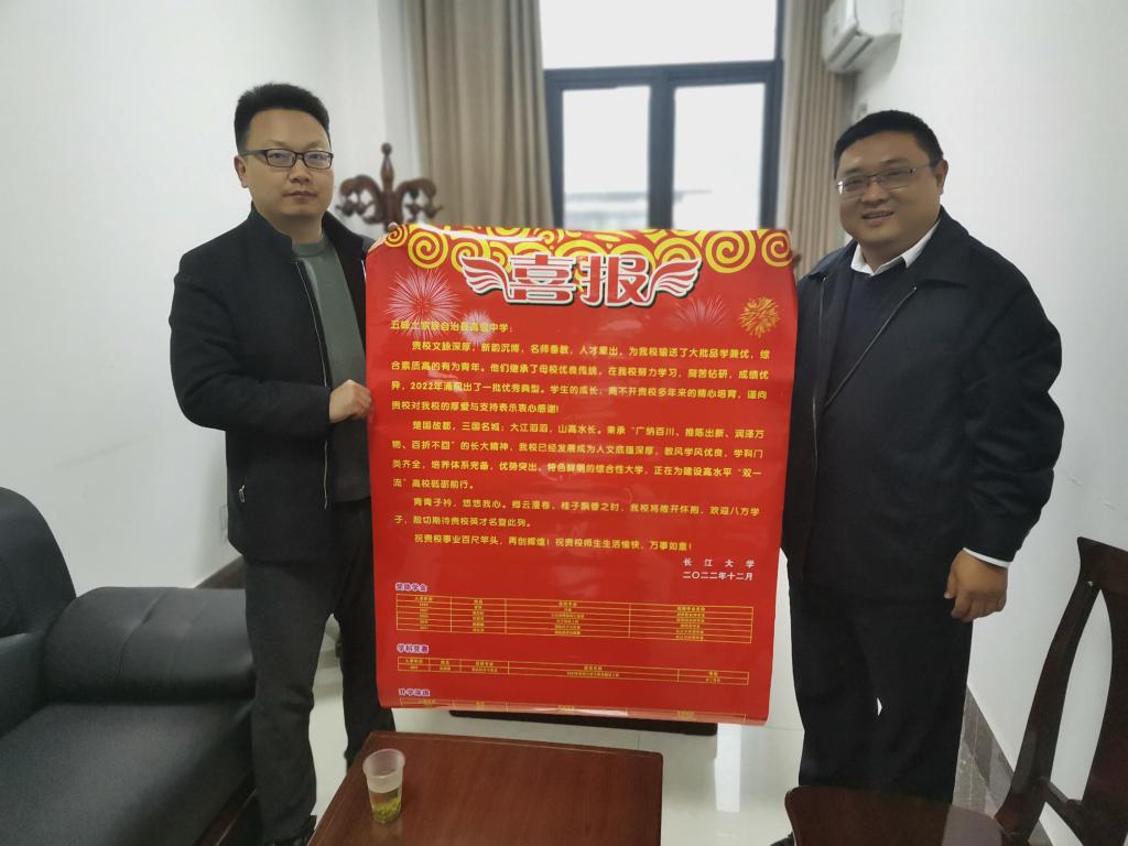 (通讯员 林香亮)2023年3月—4月,M88官方网站副经理邵四海、党委副书记尹小华、组织员章保平、招生专干林香亮一行四人前往宜昌包片高中开展本科生招生走访宣传,并为各所高中送上喜报。