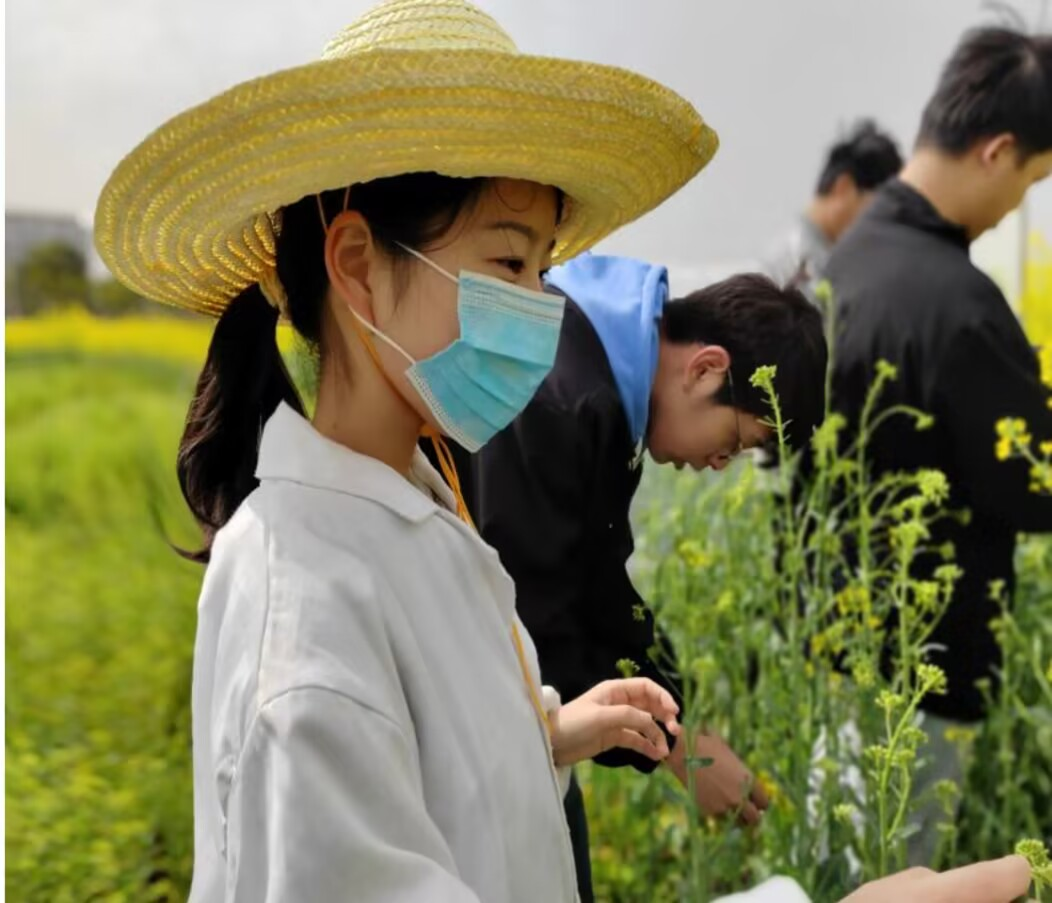 其次是摄影作品“折颜”,本次作品摄于一次在“三早进”的画面,该同学跟随导师和师兄师姐们进入油菜花田摘花,帮助他们进一步完成一项科研任务。科研亦是劳动的一种形式,学农爱农亦能兴农。“花开堪折直须折,莫待无花空折枝”,青年应在有限的人生通过劳动创造无限的价值。“折去”的“容颜”会以另一种形式“开花”。